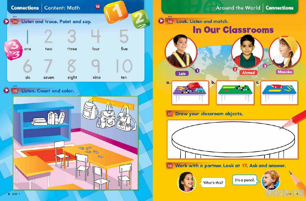培养跨文化英语思维能力。针对已经开始形成思考能力的7-12岁学生,Big English每个单元均有Language in Action, 包含了科学、文化研究、艺术等内容的Connection及Around the world的Connection版块,旨在实现“将英语语言技能的学习转变为思维能力的学习”,将对学生包括跨文化交际、批判性思维能力等多方面的综合能力培养涵盖在英语教学中。