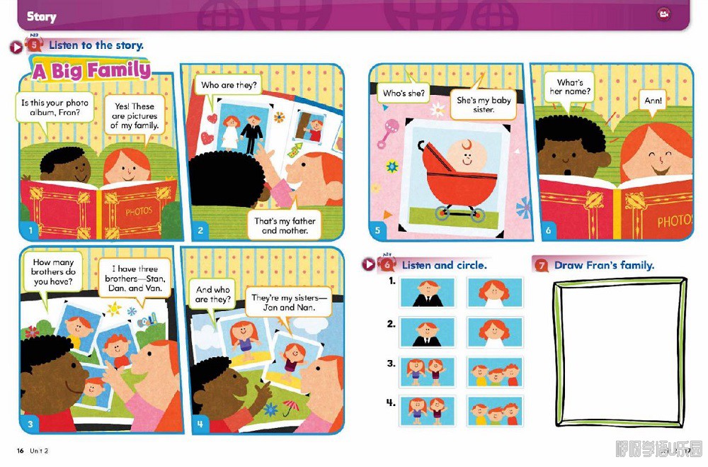 情景故事性课文+参与式活动。Big English每册书均包含了9个引人入胜的主题单元,每个主题都以学生生活中息息相关、能激发孩子兴趣的内容开始,让学生参与其中,并以故事性发展、学生动手参与为线索,引导孩子去思考,并在过程中锻炼语言能力。